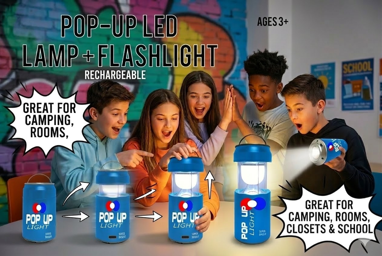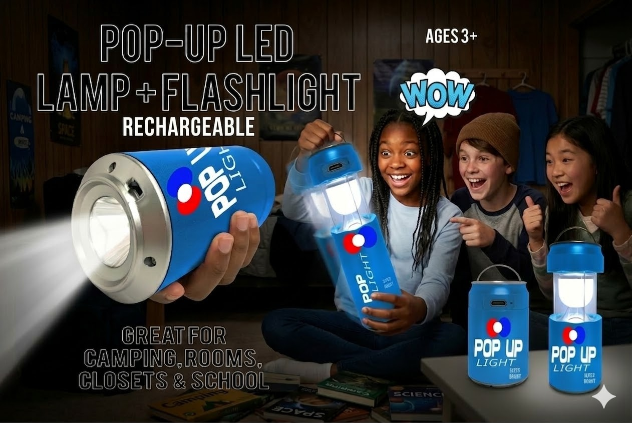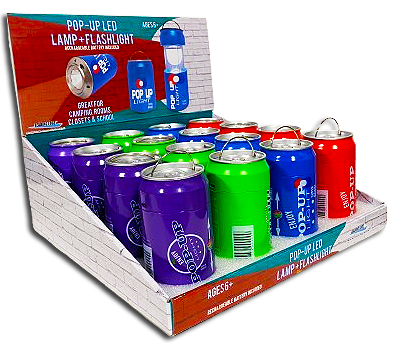 IT’S A CAN OF LIGHT… POP IT… CARRY IT !360° Printing looks like an actual soda can Flashlight Mode © 2025 Leading Edge Novelty, Inc. All Rights Reserved. Designed and built by STOO leadingedgePop Up Light01.25.2020
